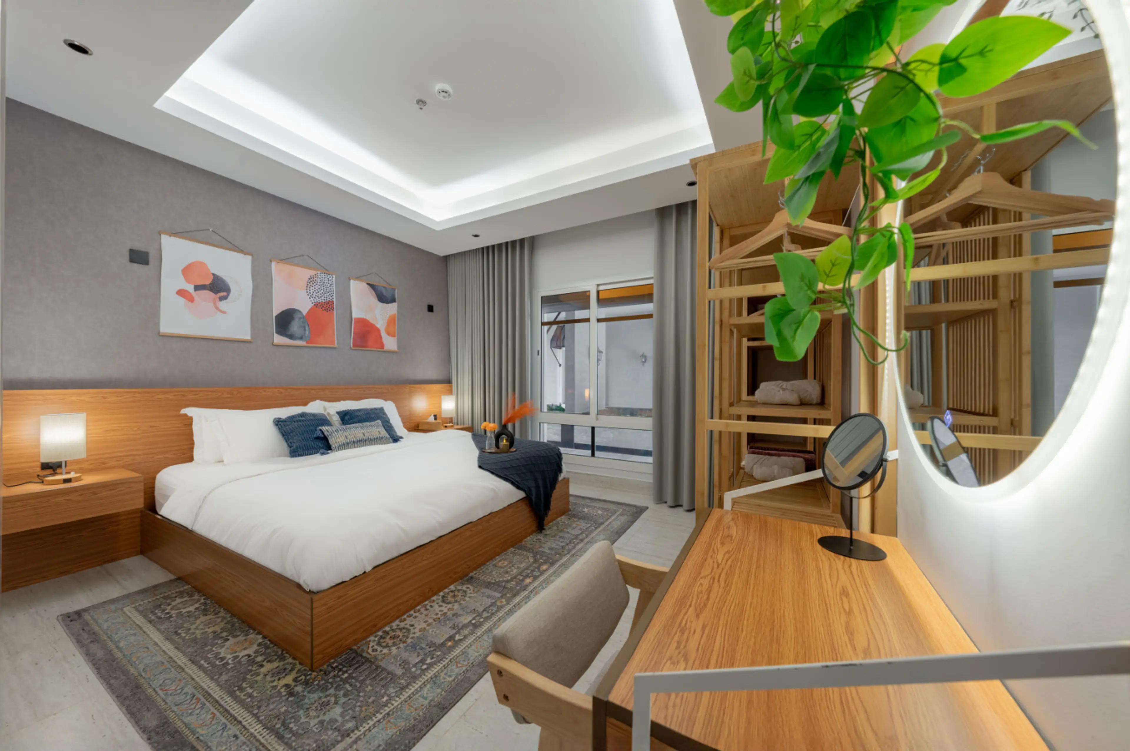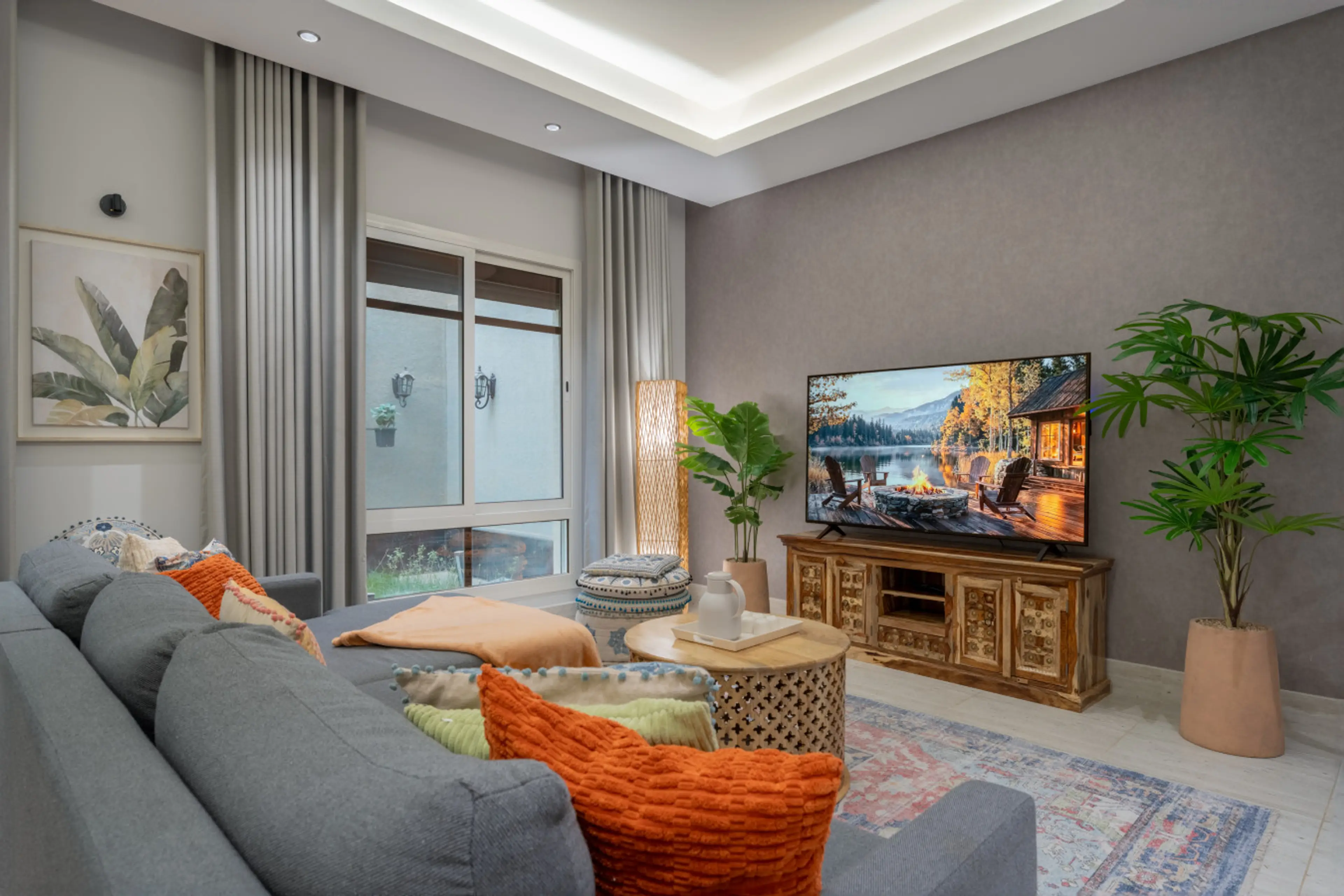 Discover a stylish bohemian retreat in Riyadh — a cozy 3BR apt designed for groups, families, and business travelers. With warm décor, spacious interiors, and access to amenities, this home blends comfort with convenience just 5 minutes from Riyadh Convention Center (RICEC). Unwind in a design-forw...